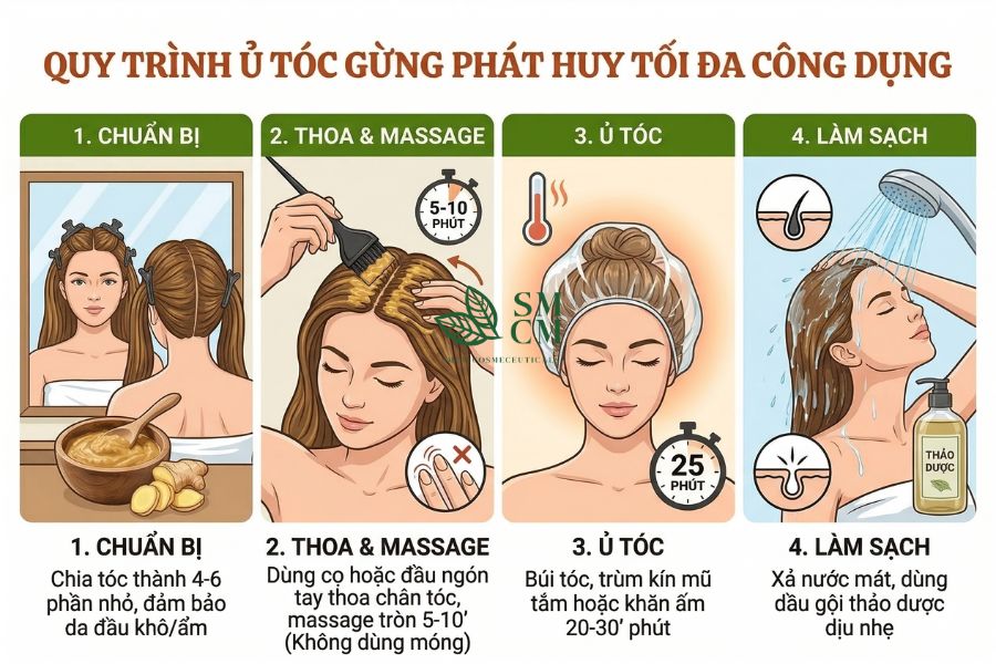 - Tần suất: Chỉ nên thực hiện 1-2 lần/tuần. Việc lạm dụng đặc tính tẩy sạch của gừng có thể làm mất đi hệ vi sinh có lợi trên da đầu.