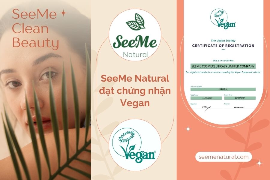 Chúng tôi tự hào thông báo rằng các sản phẩm của SeeMe Natural đã được chứng nhận Vegan, một minh chứng cho cam kết của chúng tôi trong việc tạo ra những sản phẩm an toàn, lành tính và tôn trọng sự sống.